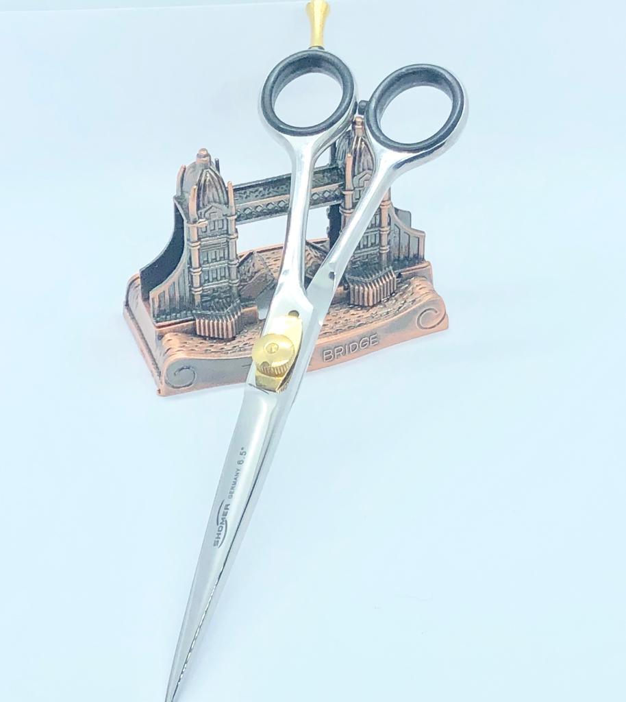 SHOMER scissors are one of the world’s leading brands of professional hairdressing scissors. Shomer Razor Sharp Cut Master scissors providing durable performance.Cut Master model is superbly engineered with razor sharp edges and are made from the highest quality heat treated German stainless-steel materials to guarantee a long life of use and long-lasting performance for this medium weight barbers and hairdressing scissor. These scissors are both tough and durable with razor-edged, hollow-ground blades.The convex edges are razor sharp and great for slicing . The straight blades allows more comfortable working position for students as well as professionals. These professional high quality scissors have a polished finish and are excellent value for money. A tension adjustable screw system provides a smooth feel and allows you to adjust the scissor according to your choice. Finger rest is removable. Removable finger rings enable these scissors to be adjusted to accommodate different finger sizes.